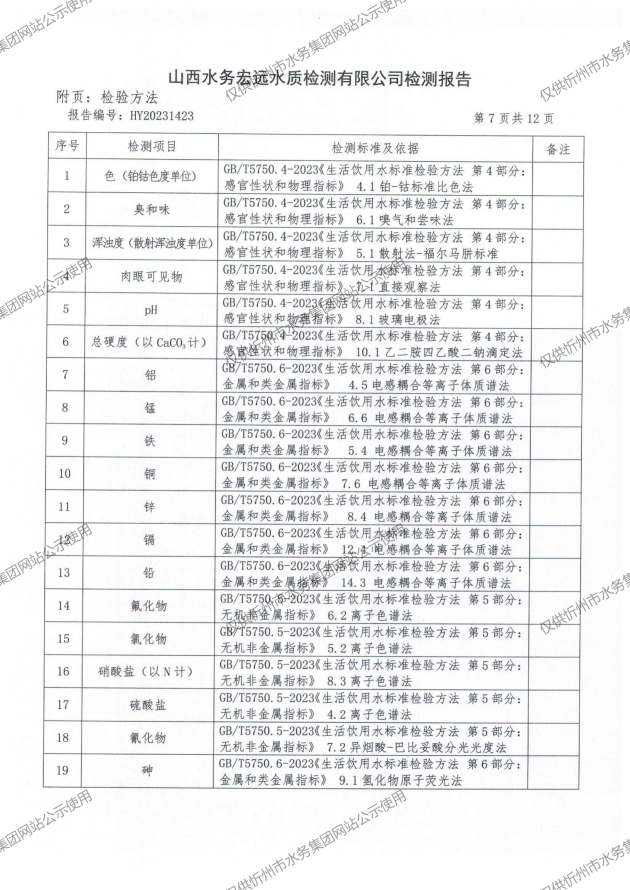 2024年忻州城区公共供水南水厂、三水厂、云中水厂出厂水97项水质全分析