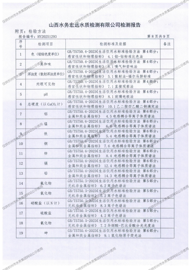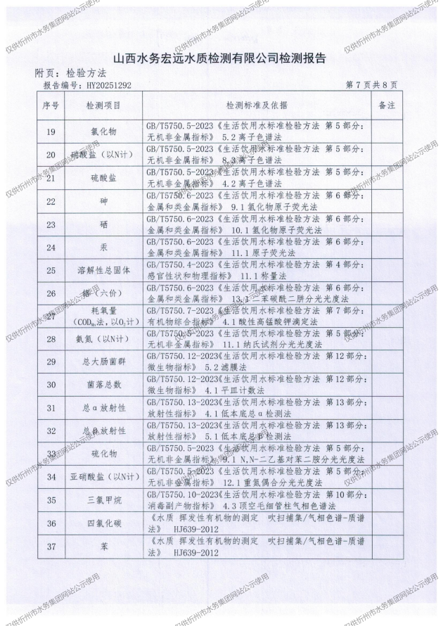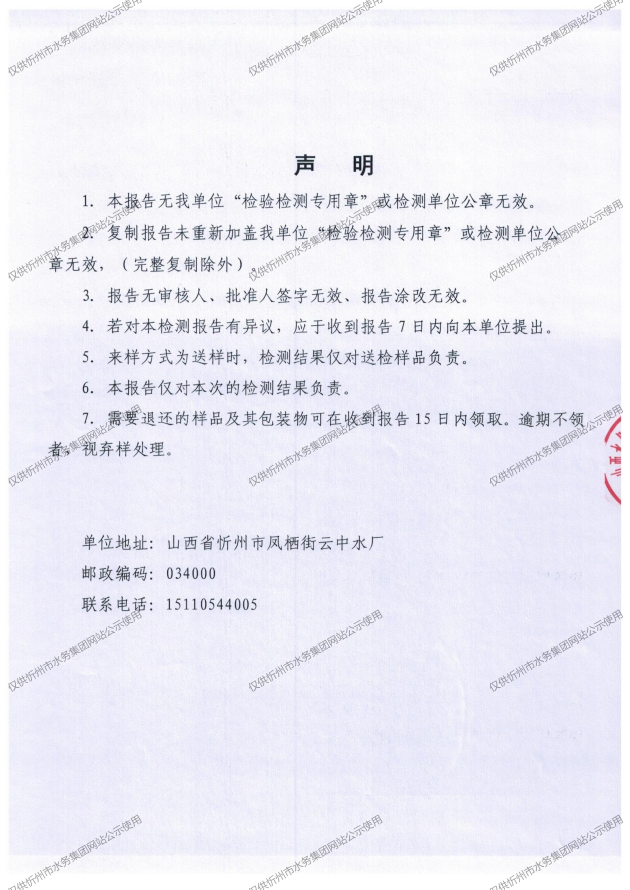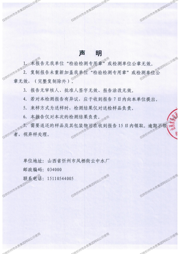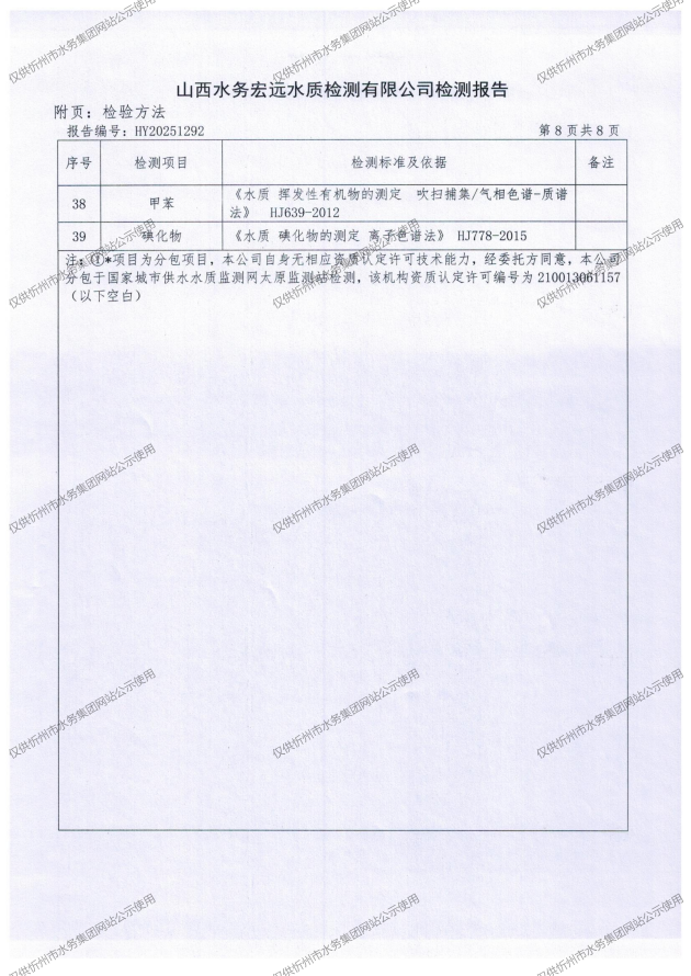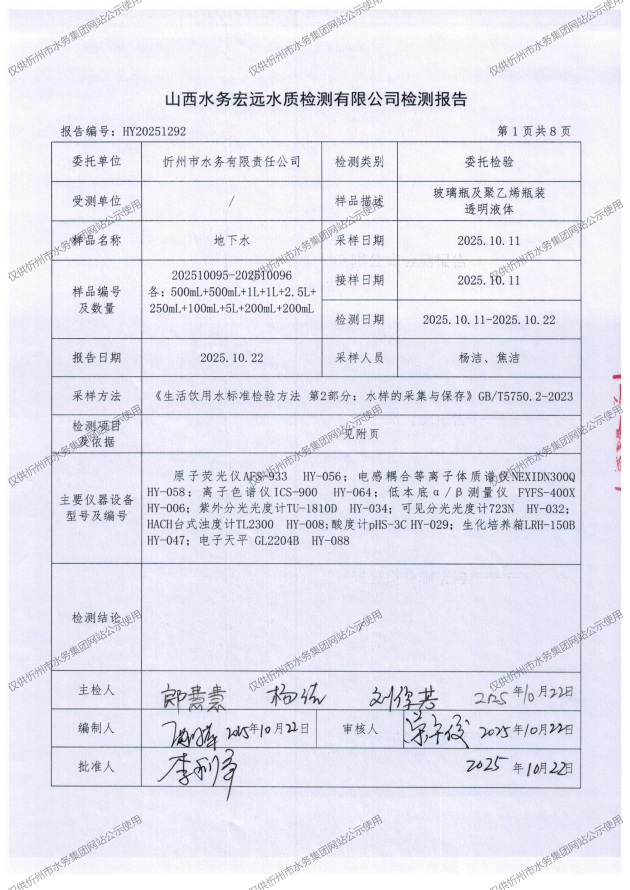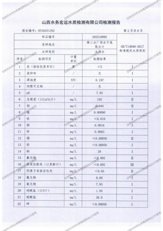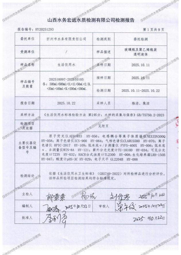忻州城区公共供水水源水、出厂水、管网水、管网末梢水2025年10月份水质信息公示
