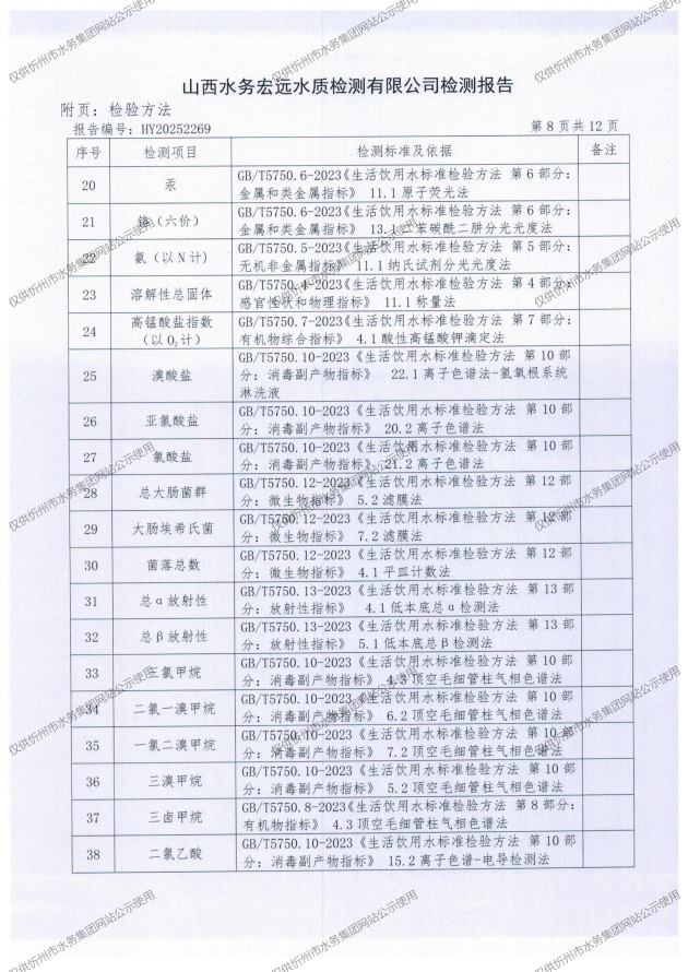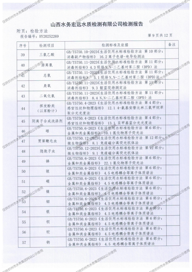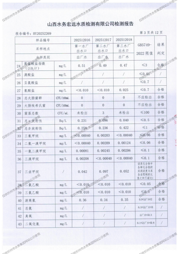 2025年忻州城区公共供水南水厂、三水厂、云中水厂出厂水97项水质全分析