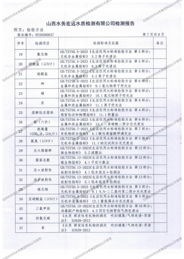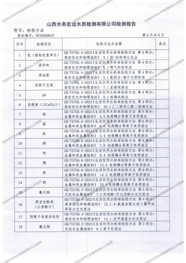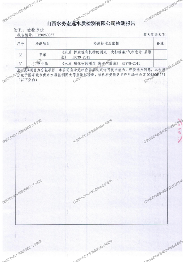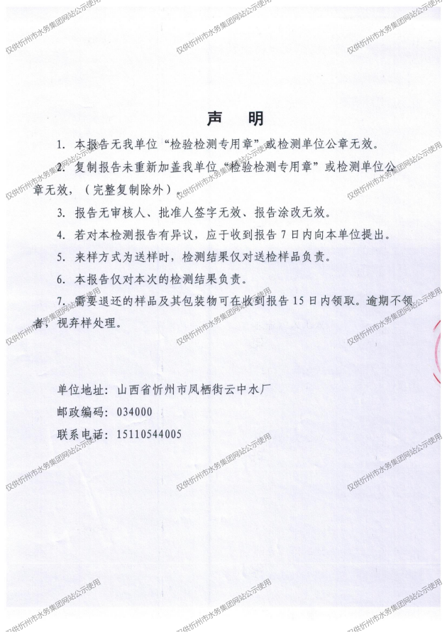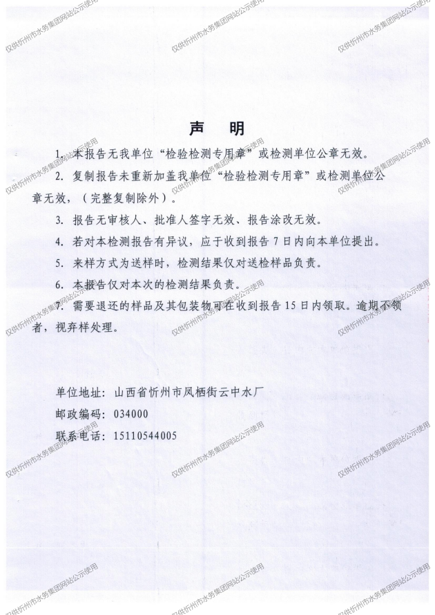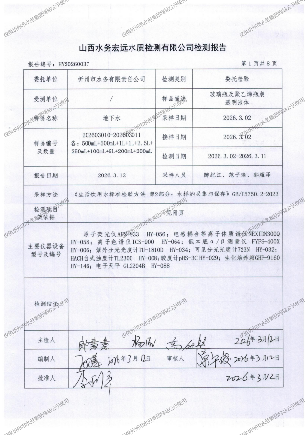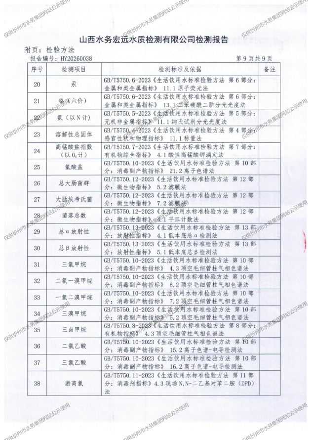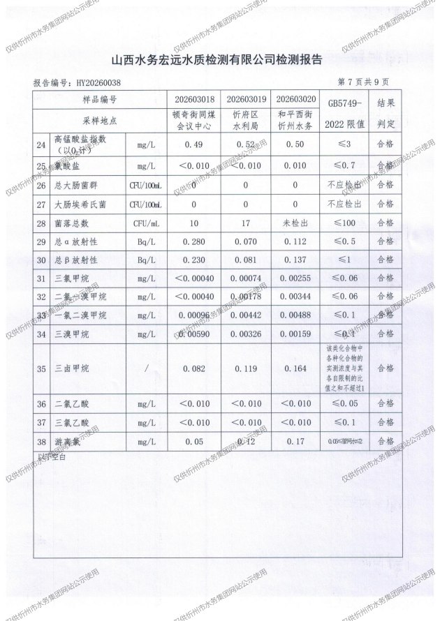忻州城区公共供水水源水、出厂水、管网水、管网末梢水2026年3月份水质信息公示